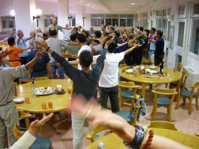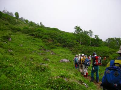 夜警察から林道ゲートから約5Km地点で崩落通行不能の連絡が入り 現地確認し協議 北トッタベツから 花のペンケヌーシに変更 22時過ぎ 7/20 4:00皆さんに事情説明 出発を1時間遅らせる 頂上で各班記念写真 交流会 7/21 オリエンテーリング 講義と質疑応答