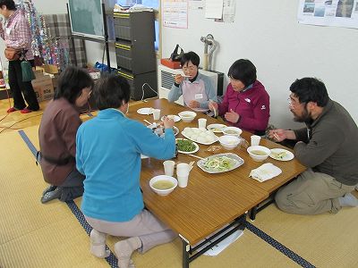 待望の懇親、食事会 食事担当 遊悠倶楽部の皆さん紹介 八甲田スキーツアーの映写