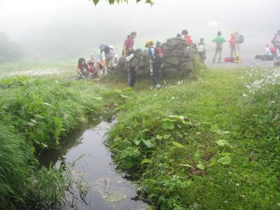 曇りの為頂上は霧の中、それでも参加者は元気に登って来ました。