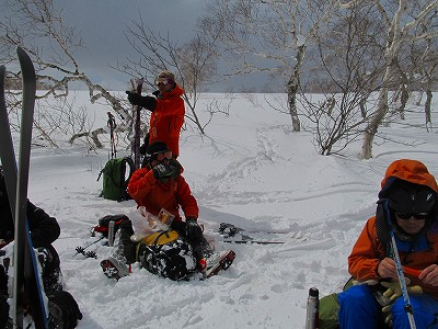 た。快適なパウダー滑降であった。その後、湯沼を通り、チセヌプリスキー場休憩所で昼食。時間も早